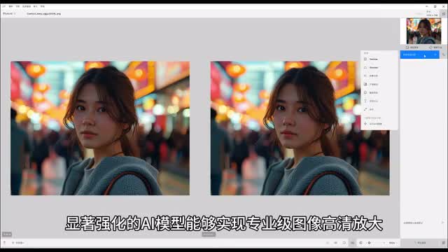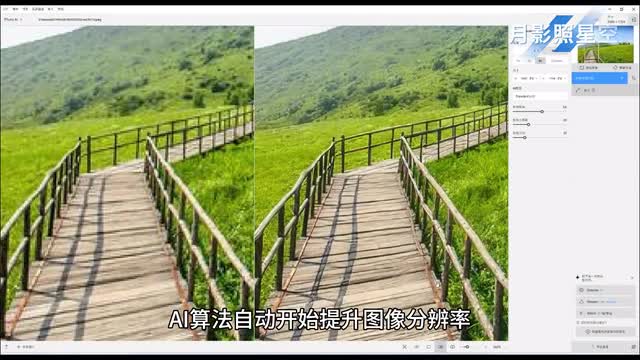 对图像放大修复效果进一步显著增强。导入一张风景图片,可以看到导入后ai算法自动开始提升图像分辨率,使其变得更加清晰与细腻。