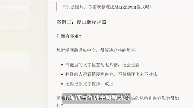 那如果你觉得这个文章它的这个细节不够到位啊,或者写的非常的精简,没有主次关系。啊,亦或者有一些素材你想替换的,你可以直接发给他。比如说我这儿给到他的这个指令啊,我自己挑选了三个a i工作流的落地案例,我让他去替换原文当中的两个案例。这样呢我写出来文章的这个原创度也就更高一点。大家可以看到哈他这地方案例已经替换进去了。