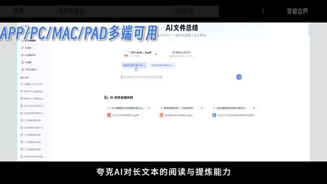 此外,如今越来越多的人在网上学习编程、上技能课,然而网课动辄数小时的长度很容易让人放弃。将视频上传到夸克,它可以帮你ai生成思维导图,提取课件p p t,帮助你提炼出最重要的内容,让你在更短时间内掌握一门技能,了解更多有趣的新领域。除此外,夸克ai对长文本的阅读和提炼能力,能帮助我们有效理解文本,辅助解决实际问题。学术参考论文、工作、交接文档、买卖、交易合同等等,都可以让夸克ai帮忙梳理摘要、生成导图以及翻译,对于不清楚的内容细节也可以向ai追问,让阅读理解不再是解决我们手头事物的障碍。对于很多学术界。