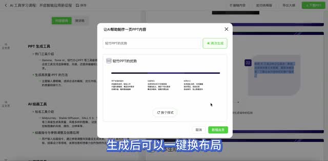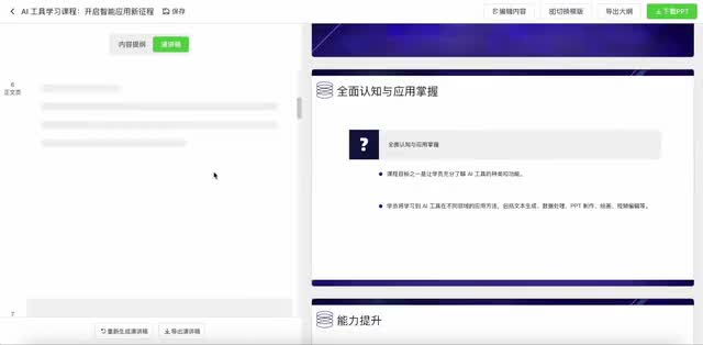 如果需要讲课稿,可以一键自动生成说课稿,只需几分钟,课件d p t就制作完成了。