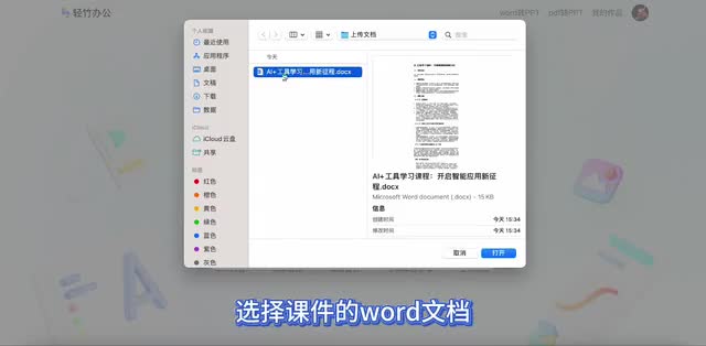 用青竹办公制作p p t课件,在首页点击未转p p t,选择课件的word文档a i开始智能识别文档的内容并转化成p p t大纲。