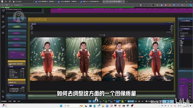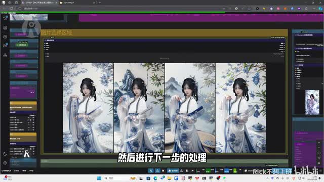 好,介绍完核心参数区的所有内容,接下来我们来进行一次出图的尝试。这边我们来更改一下随机种,然后进行一个队列的执行。我们稍等片刻,接下来就可以在图片选择区域当中去选择它生成的图像内容o k这是我们第一步去生成的一个图像内容。接下来去选择最满意的一张,然后进行下一步的处理。这里我们选择第二张,点选之后自动执行下一步。那么接下来他会对我们的人脸图像进行融合,然后对我们的图像光线进行整体的调节。可以看到打光前后我们的人光线是有着明显的变化的。那么如果开启了flex的图像优化,我们会到flex图像优化这一步当中,对图像进行质量的提升。