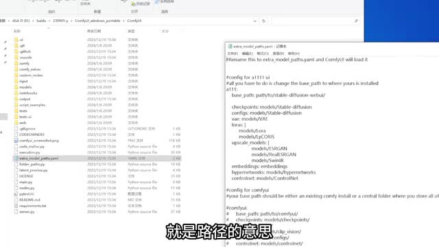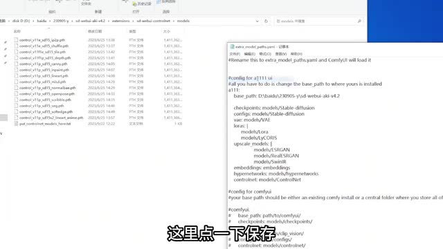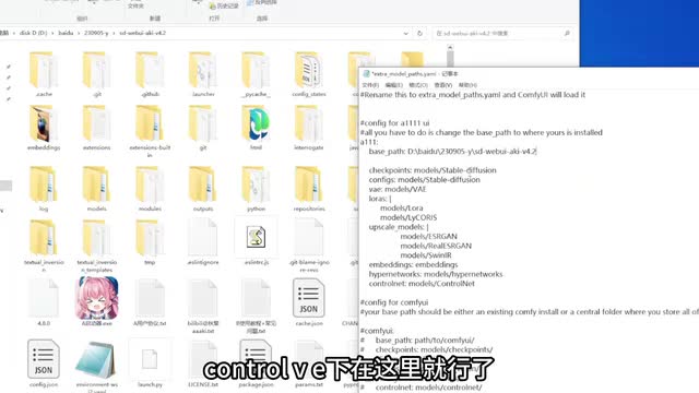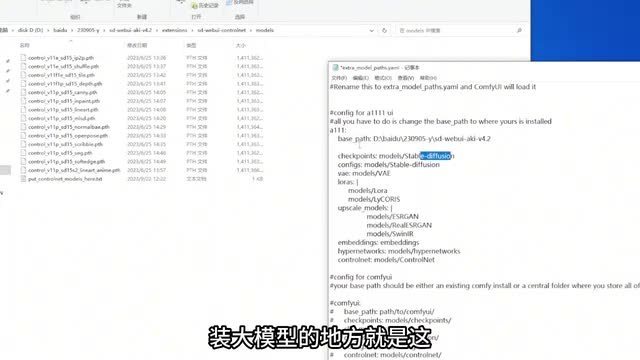 这个就是路径的意思嘛,然后你等于说是给他引了个路,control v一下在这里就行了。然后这个大模型的地址的话,在model s d文件夹,对。