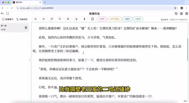 行吧,你牛逼。大家看一下这个小说质量怎么样,毫无a唉味道,直接就能用。我深吸一口气,摆出一副视死如归的架势,猛地拉开窗户,对丧尸的脑袋就是一刀。