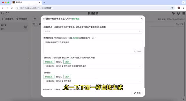 能写乐子文吗?答案是肯定的。本期视频我就交给你如何使用一句话剧情生成一篇乐子乐子文在番茄小说特别受欢迎的爆款,想体验的三连评论区留言私信我就可以。先点a i协作模型,选择氛围版,许多风格和许多要求都选择小榄出品的类乐子文。