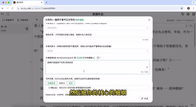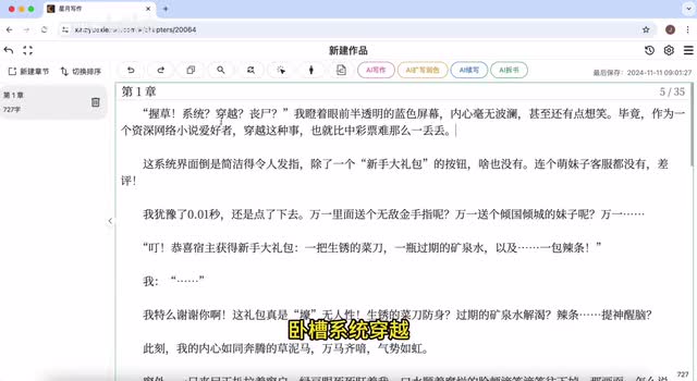 来,我们看一下,大家一定要跟我看完,因为这是ai写作的天花板,千万不要错过。卧槽。系统穿越像是我瞪着眼前半透明的内心,毫无波澜,甚至还有点想笑。