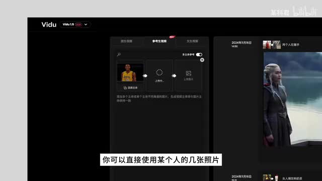 进入网站登录注册后,点击参考生视频,打开多主体参考功能。你可以直接使用某个人的几张照片,加上一些描述,就可以直接生成一段视频了。