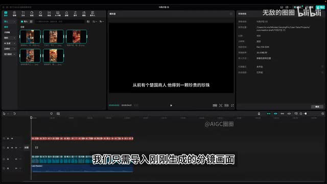 接着点击生成视频,选择使用本地素材,等待一会。音频字母和背景音乐就自动匹配好了。我们只需导入刚刚生成的分镜画面,拖入编辑区,根据文案节奏排版调整一下就大功告成了。later导出看一下效果吧。
