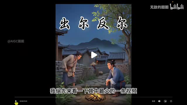 ok我们话不多说,视频制作全流程安排。当然在视频的最后也会分享下喜好心得。let go. 我们先来看一下其中最火的一条视频,很凡尔。在中国古代有一个小山村,村里有一位以不守诺言著称的农夫,名叫阿福,他总是出尔反尔。