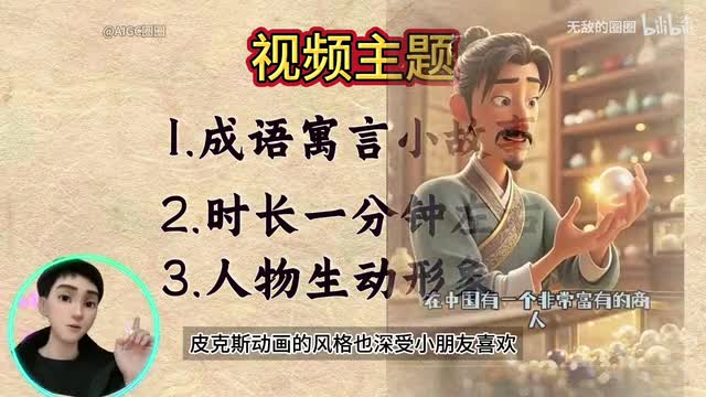 可以看到,此类视频的主题是成语寓言小故事,每条视频大概一分钟左右,人物形象生动,表情丰富,皮克斯动画的风格也深受小朋友喜欢。了解了对标视频,接下来就可以借助a i来实现了。文案内容是决定此类视频流量的关键因素。吸引儿童的视角来审视内容。