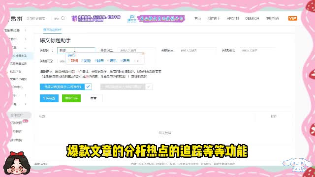 第十个也是最后一个易撰,自动生成热门标题,提供人气文章的采集下载,爆款文章的分析、热点的追踪等等功能,且爆款标题必备网站。