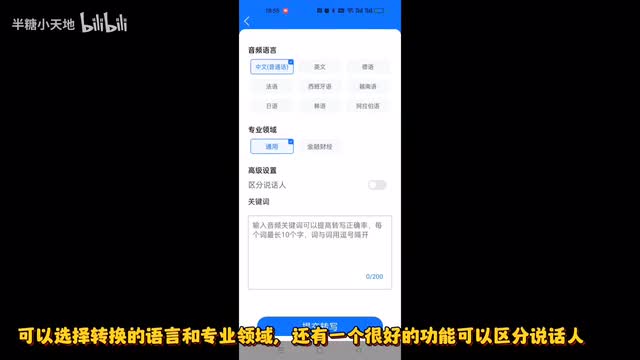 然后转文字还可以导入音视频,选择要导入的录音文件,确认导入去转文字可以选择转换的语言和专业领域。