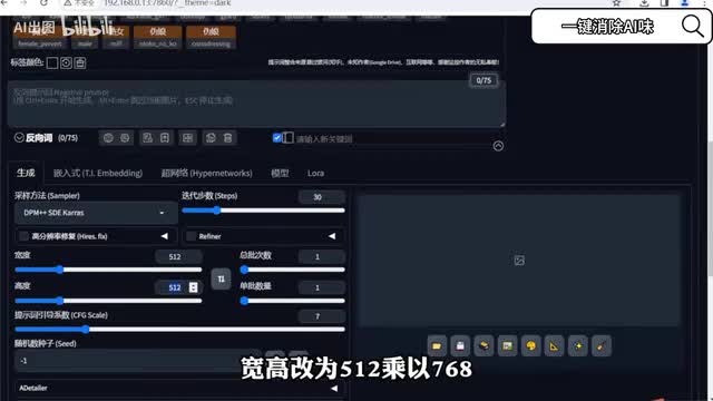 迭代步数改为三十,宽高改为五幺二乘以七六八,总批次数改为三,一次一跑。