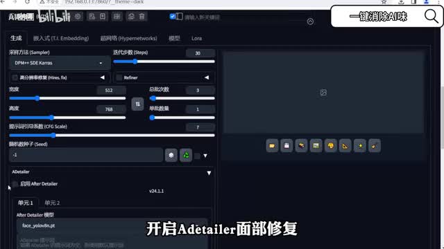 三张图出来,我们可以选择一张自己最满意的,开启a t胎老面部修复,勾选启用模型,选择分析u v八。