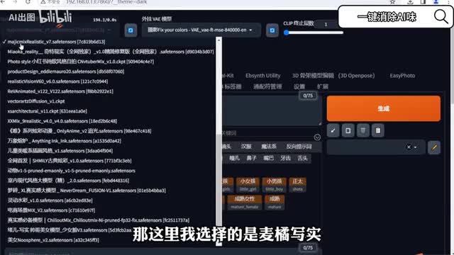 首先呢我们使用s g来生成一张图,选择一个写实类的大模型。