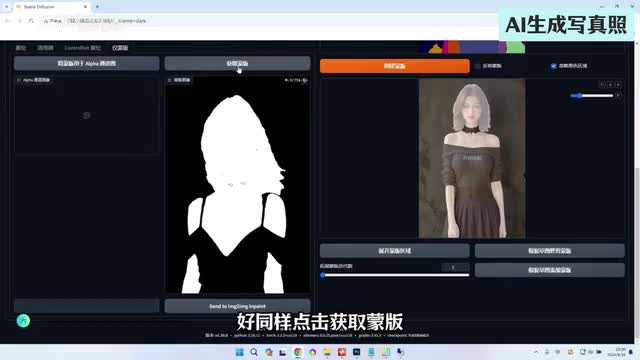 呃,通过这个插件,我们可以来进行门板的快速处理。我们并不需要过度数这样的一个专业工具。好,来到旁边的色块图当中,我们点击头发,点击人物面部的一些内容,然后点击创建门板。好,这个时候的话呢呃我们有一些瑕疵,可以通过进一步的一个修剪。好,接下来的话呢,我们来到景文版选项,点击获取文版。