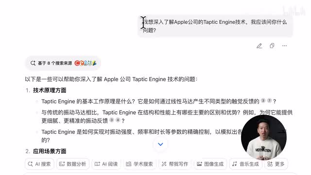 这个交给a i搜索就是快就是强。结实的结构框架加上详实的支撑材料,这本文稿才是丰满的、具体的、有说服力。到这儿前面介绍了几个方法,你就知道怎么用了。原问题一帮你快速扫盲,不知道为什么的时候就用原问题的思路提问。然后逐个进阶。用costa或者star的框架向ai提问,你得到的文本质量就是要高很多。再者,学会用小模型推动大模型。进一步要求ai基于特定场景的结构模型给你输出文本。这个就是站在前人的肩膀上,肯定是能够更好的解决问题。最后再利用a i搜索局部堆料。有针对性的添加详实的支撑材料。