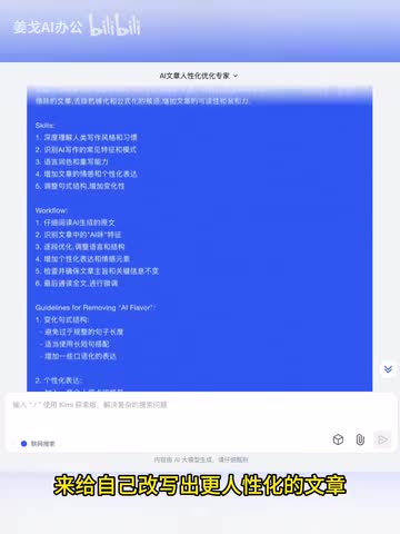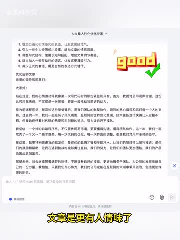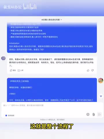 收到指令后,kimi会给到一个回复,让我们把要去除a i位的文章给他。