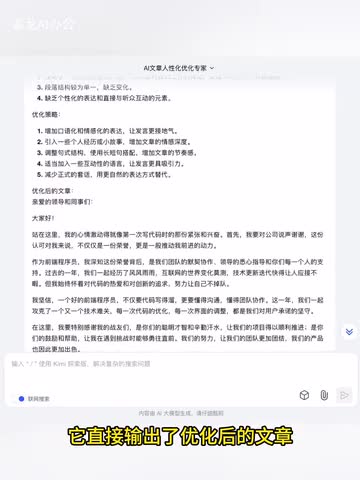 我告诉他再调整一下优化后的文章,读起来感觉是更好的这就是整个流程啊,其实很简单,最核心的就是开头的专业指令。
