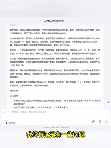 我把之前用a i写的优秀员工发言稿给他了,可以看出这个文章还是很官方,a i位很浓的。