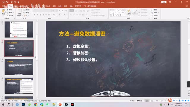 比较核心关注这个变量对吧?你做一下加密,加密就是你把它替换,然后你背后相当于你准备一个密码本一样,告诉自己哎这个这个名字实际上指的是什么?是另外一个,这一个实际指的是另外一个,然后等你分析完之后,你再把它把那个密码本拿出来对照了之后,哎,还原一下是不是就完成了。好,这是这两种。就是说你在进利用chat g p t进行这个论文润色,或者是这个呃数据分析以及可视化的过程中。你如果害怕你没有发表的成果,或者是没有发表的结果。被别人所窃取,你可以用刚才我们讲的那两种方法,很好的去避免掉。ok那我们接着分析第三种方法。