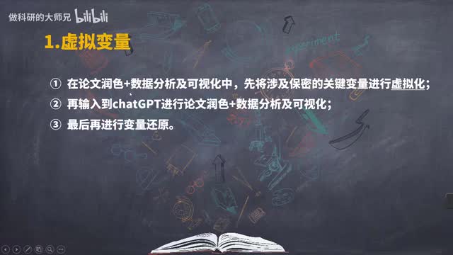 第一第一步就是在你论文,这个是应用于你的论文润色,或者是你的一个。没有发表的一个实验数据分析以及做图的过程中啊,就是你用chat g p t来完成这两件事的时候,你怎么去保证你的数据不被泄密,对吧?那首先啊你需要将你涉密涉及到这种保密的这种需要保密的这种关键变量进行虚拟化,对吧?首先找到这个关键变量,把它给虚拟化。然后呢你再把这个虚拟化之后的你这个论文也好,你的数据也好,输入到chat g p t里面,让它进行论文润色,或者做一个数据的一个各种分析,然后进行数据的这种作图对吧?那么最后第三步呢,你再进行变量的一个还原,就是你虚拟化的最后。呃,你再给它换成它原原来的变量o k。呃,具体什么意思呢?我们接着这个结合这个实例,我相信大家就能看得懂了啊。好,我们看一下这个实例的一个示范啊。