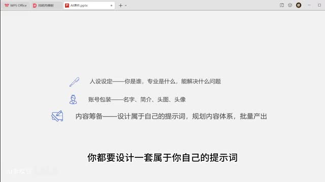 让人感觉你很专业。第三个就是内容的筹备。你不管做什么样的内容,你都要设计一套属于你自己的提示词。这个提示词要有你的风格,有你的这种语言风格、内容风格。