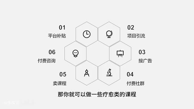 比如说你的制作能力是一种课程。如果你是做冥想赛道的那你就可以做一些疗愈类的课程。如果你是做法律赛道的,你就可以做一些普法类的课程。第六个呢是付费咨询。