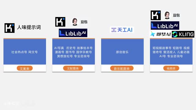 有了这套提示词之后,你就可以大量批量的产出内容,为你的视频创作做好准备。第四步就是视频的制作,这里边包括文配图、口播文沛视频,甚至直接就是出文字稿。这里主要用到文生图啊、文声视频、图生视频这些a i的工具。最后呢将这些内容合并到剪映里边。
