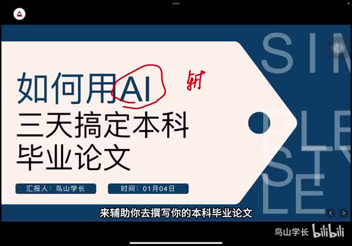 hello, 各位好,我是鸟山。欢迎来到本期视频。本期我们来聊聊如何用现在非常火的a i大模型来辅助你去撰写你的本科毕业论文或者硕士毕业论文。这里的搞定应该要加双引号啊,它只是辅助的工具。我们下面来看一看。