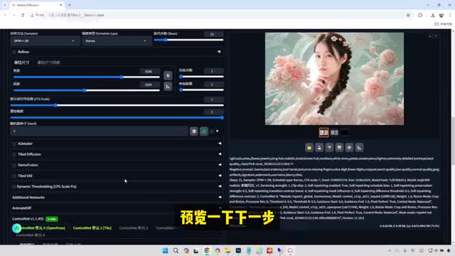 同时将我们的这个control当中的open pose进一步的去开启,将我们刚刚所下载的效果图作为一个控制来源去处理新的姿势。选择二阶算法运行预览一下下一步打开tile的fusion插件,同时保持这个插件的开启状态。打开我们放大的一个算法,直接选择保留原片的尺寸,去进行我们整体图像的一个质感提升。