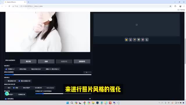 先选择一个基础的起手式,再把我们提前编写了一个女性在画面当中的描述加进去。这里同时我也加了一个罗二来进行照片风格的强化。确认完成后,我们需要进入control控制网来控制我们整个画面的生成,这是非常重要的一个步骤。