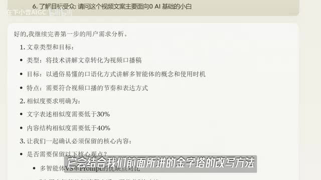 我把这套方法论融入到了我的这套结构化提示词当中。接下来我会用两个案例手把手带大家去实操一下。那第一步我们需要把这个提示词复制到对话框啊,a i呢紧接着它会让我们明确四个关键点,它会让我们提供文章的类型是什么?你要达到的相似度是什么?要保留哪些核心的要点,目标受众是什么?那为什么要设置这些回答呢?因为不同类型的文案它的改写策略是不一样的。比如说销售文案,我们就需要更多场景化的描述。
