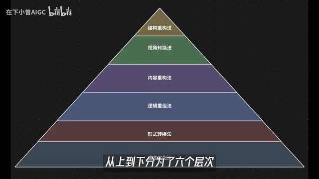 所以真正高质量的ai改写,它是一个由深到浅的过程。我自己摸索出了这一套金字塔式的ai改写法,从上到下分为了六个层次。越往上改写的效果就越好,相似度呢也就越低。我把它归纳为结构重构法、视角转换法、内容重构法、逻辑重组法、形式转换法的优化法。