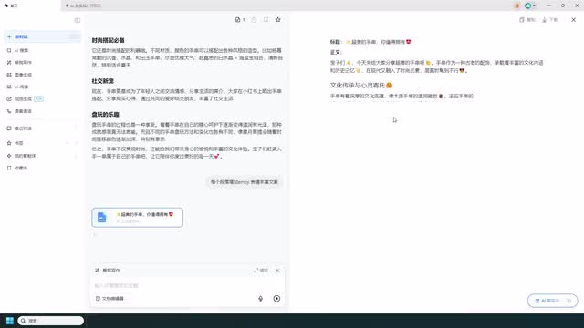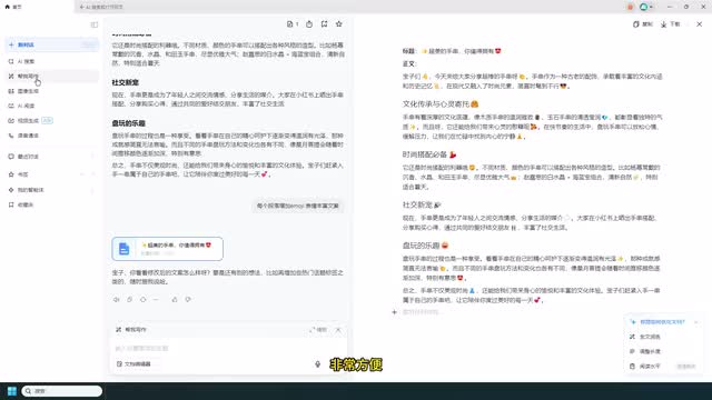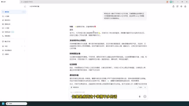 手串。是生成一篇关于小红书,关于手串的小红书文案,我们直接点击发送,我们看它生成的效果如何。