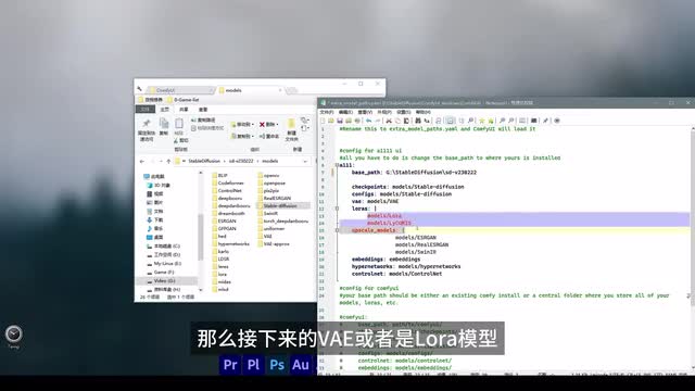 关闭保存。这样的话咖啡u i的配置呢就会识别我们s d下面相应的模型目录了。那么这是在我们曾经电脑有装过stable division web u i的情况下,进行这个模型路径的安装。如果没有呢,我们就可以不需要改动这个文件啊,它是什么样还是什么样。那么我们默认的路径呢就是在conflict的根目录下。mode一样的啊,进来以后呢一样能看到check point主模型。然后再往下呢什么happy night world抄网络,又或者是这个embedding嵌入模型laws对吧?又或者v a e在这里都有,或者是scale的模型放大模型。