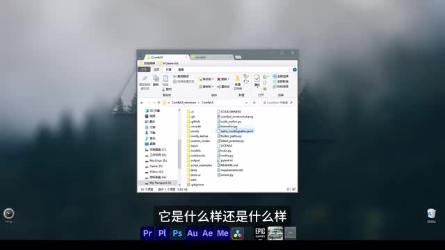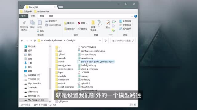 那么第三个是app date,可以看到就是相关的升级文档。当我们需要升级更新我们这个c p u i的时候,直接update就可以。那么其实这里呢我们也可以不需要这么执行啊,之后我们用一个比较便捷的工具来进行项目的管理。那么接下来我们说到的就是一个简单的路径配置了啊,我们进到conf u i的文件夹里面来,在这个文件夹里我们可以找到这样一个文件,extra model path, 就是设置我们额外的一个模型路径。后缀名呢其实这个是a m l,后面呢它其实这个地方给了我们一个这个样本,这只是一个样本文件,它并没有正式起作用。要让它起作用的话呢,我们需要把后面的这个删掉,把这个点都删掉啊,只用y a m l做后缀。然后我们右键用编辑文本的方式把它打开,在这里就可以看到,可以设置一些它的路径。