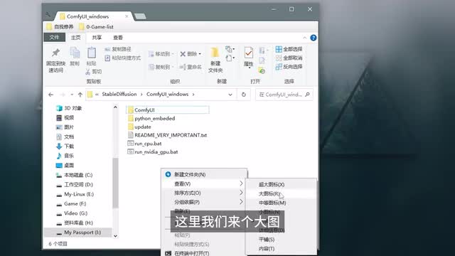 本质上来说呢,我们现在已经就安装完成了,就这么简单,解压了以后就安装完成。那么接下来我们需要简单的了解一下它的文件结构和做一些简单的配置。首先我们看第一个文件夹conf u i,这里我们来个大图标。第一个conf u i呢那么就是它的一个文件目录了啊。那么第二个呢可以看到这个python的变。这是给我们已经预制好的一个python环境。其实我们运行conf u i是在这个便携版的python这个环境里面运行的。