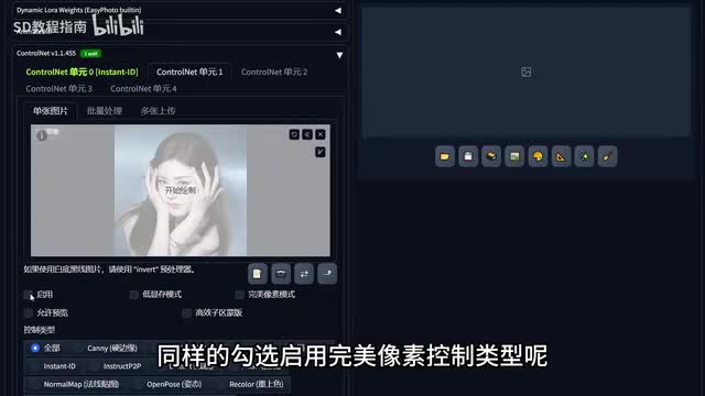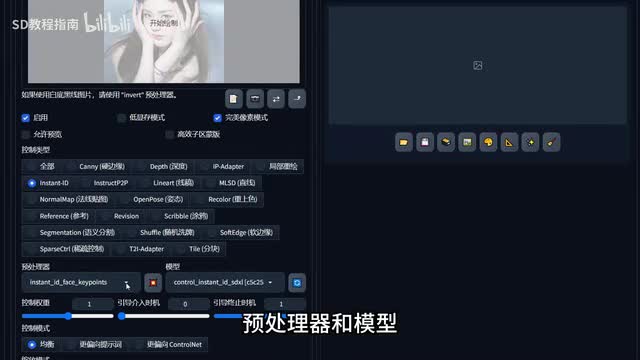 给他一张肖像图。在控制类型这里呢,我们选择instant i d。预处理器和模型这个地方抄作业就可以了,注意一定是要像我这样子搭配。