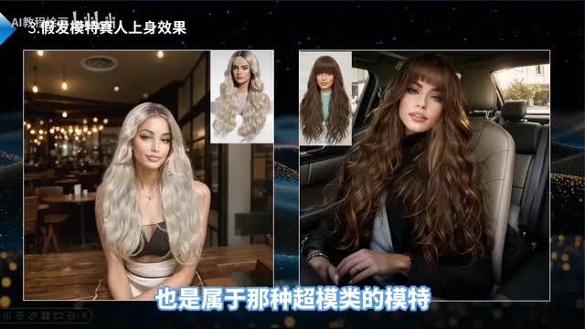 这是最后的一个成型的效果,也可以看到这是他们的一个原图。就是他们的模特的就假发的原图啊是一个假人是吧?包括这个是他们一个原图。