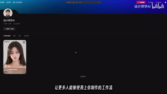 这点就是使使用的这个应用。并且点击这里的工作应用分区,能看到更多不同的功能应用,这些都是可以一键在线使用的。我来给大家实际操作一下,点击这个a i换脸应用,可以看到作者使用这个工作流所实现的效果图。
