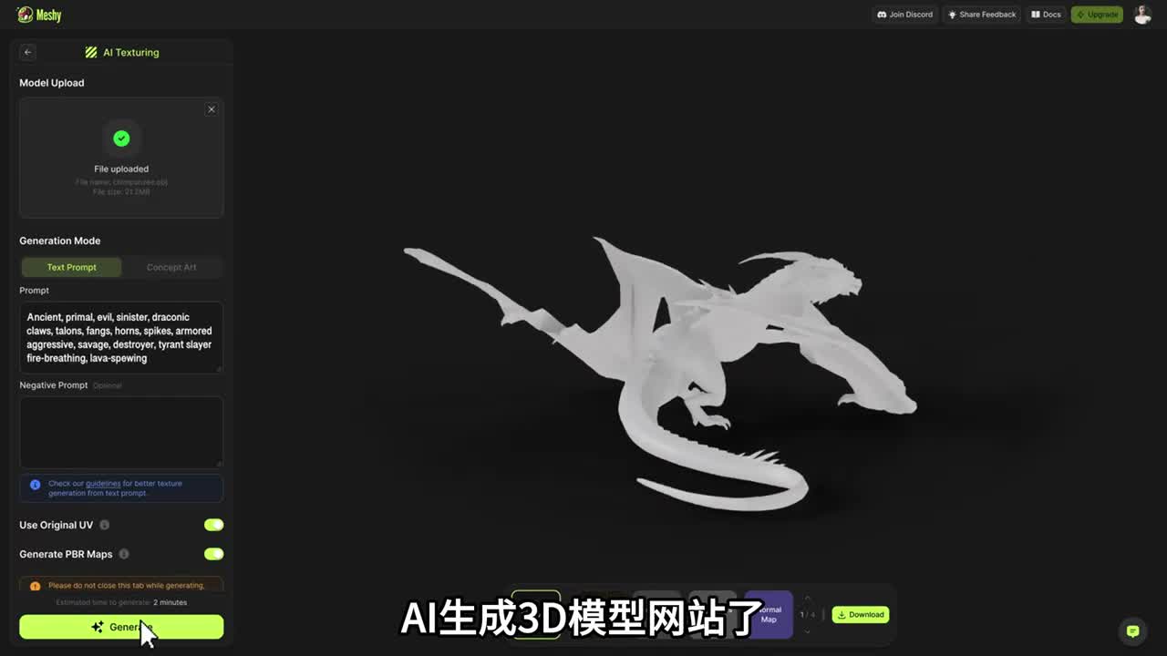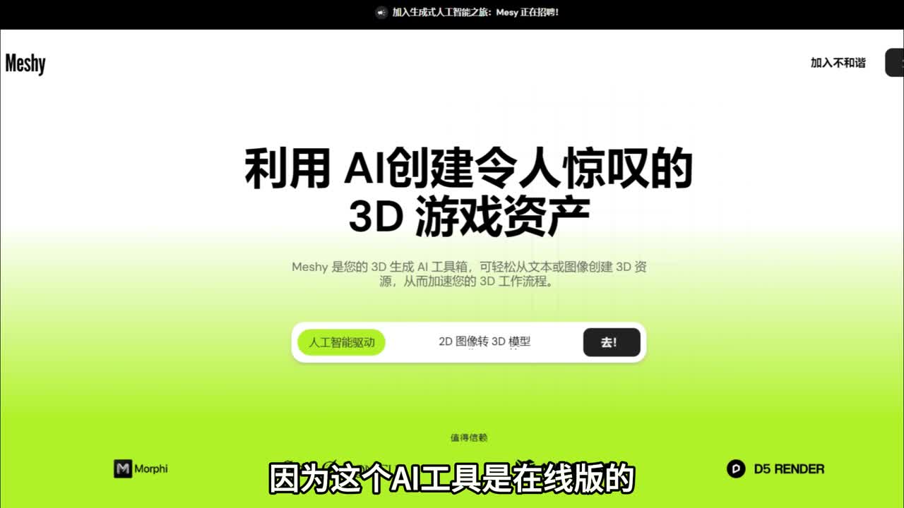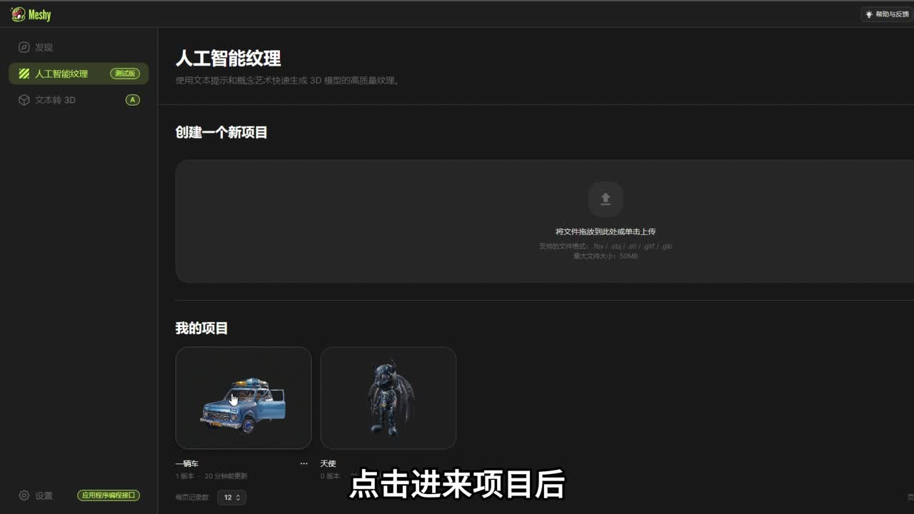 它还可以根据现有的模型加上a i处理的纹理,因为这个眼工具是在线版的,所以我们只要滑到最上面,点击这个go就可以来到它的创作界面了。