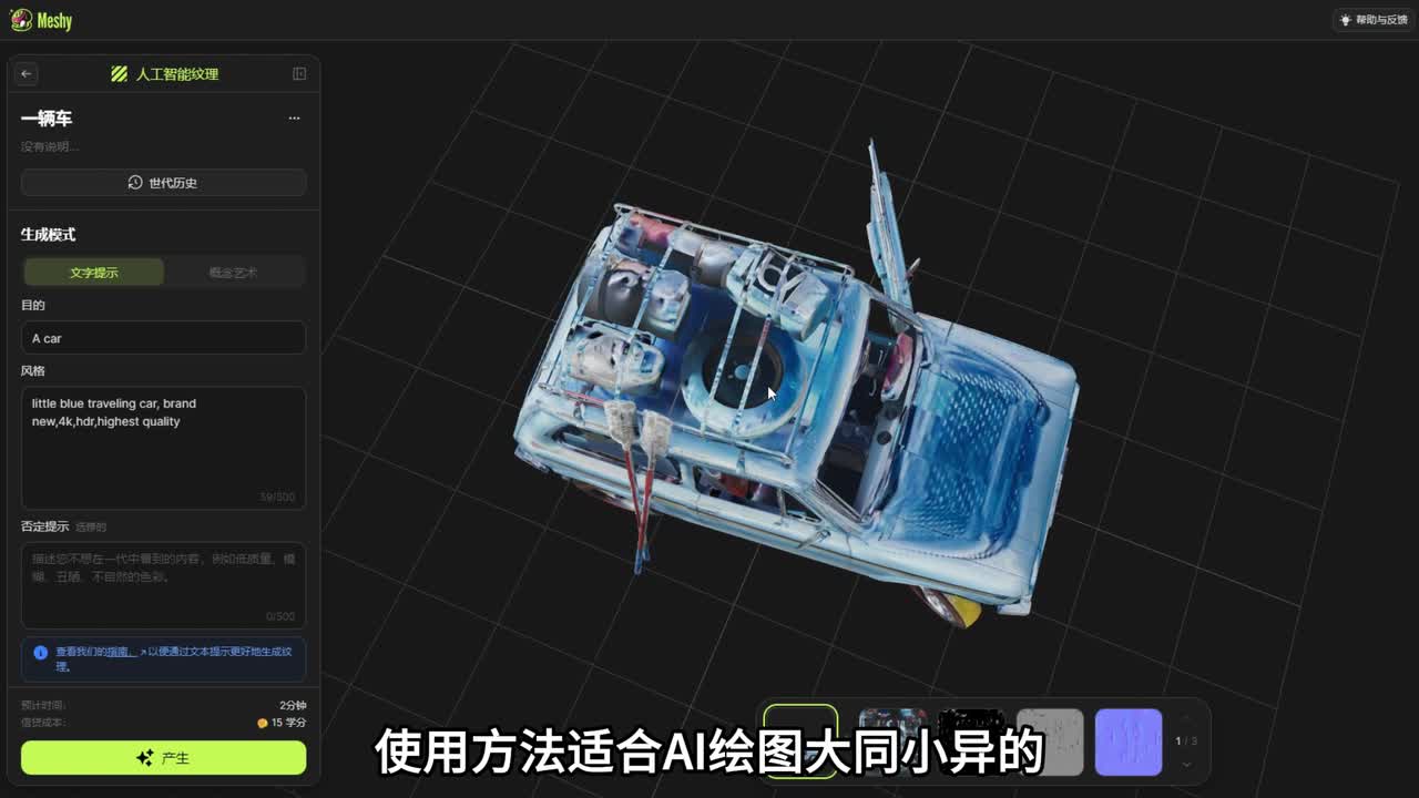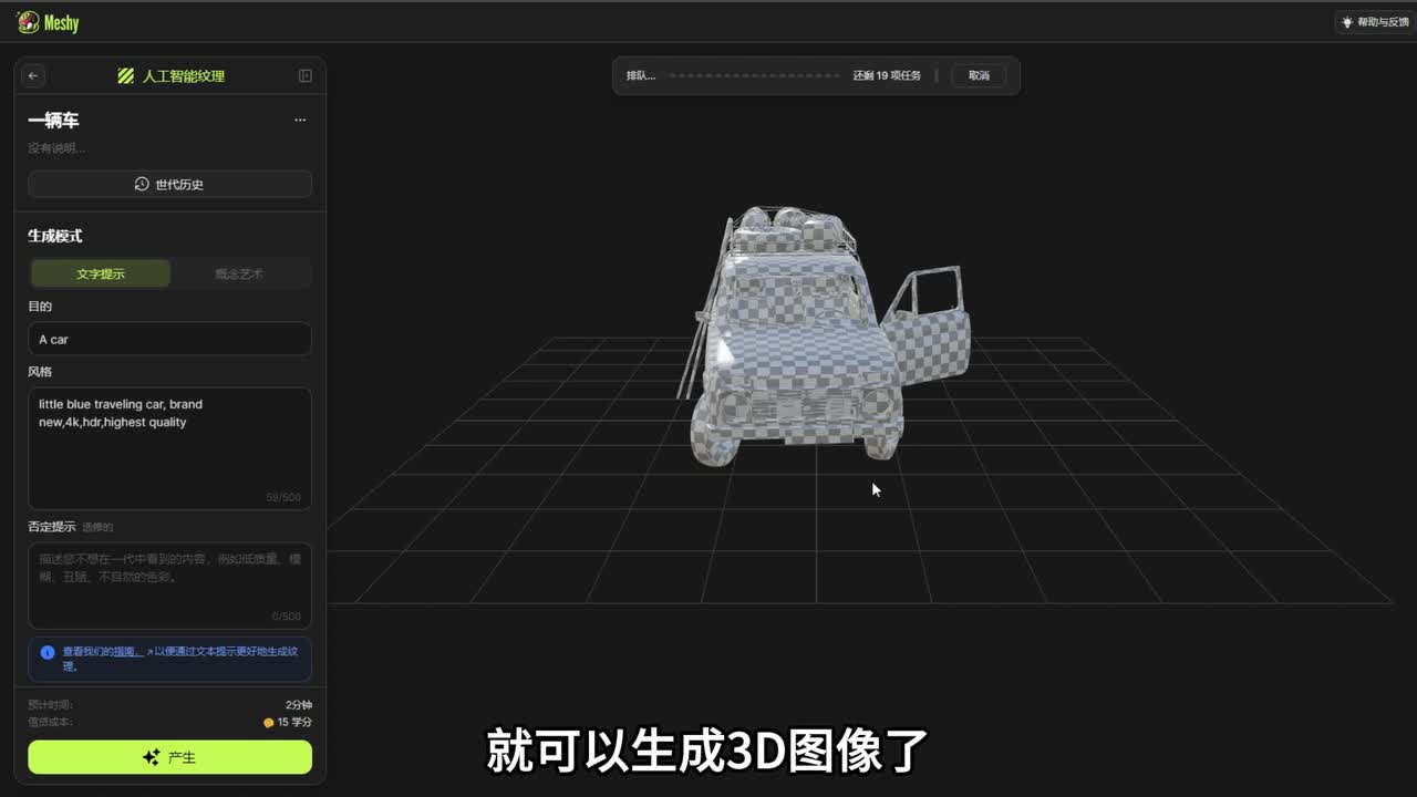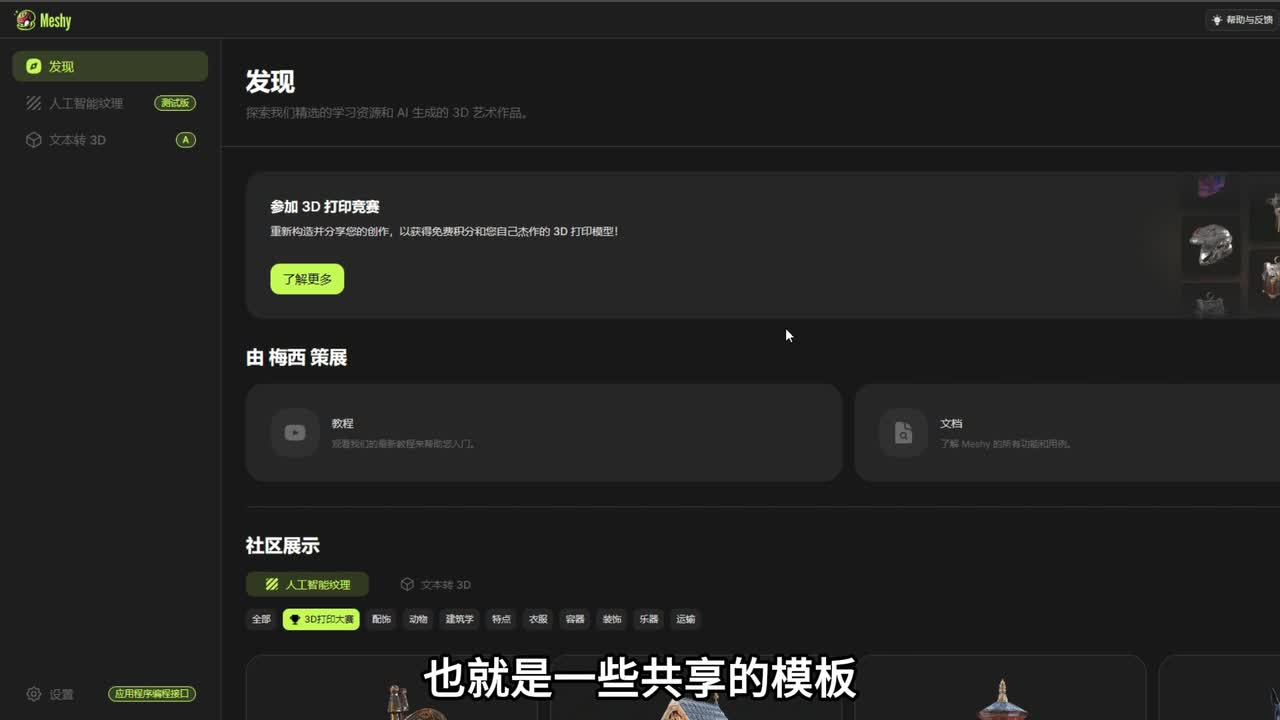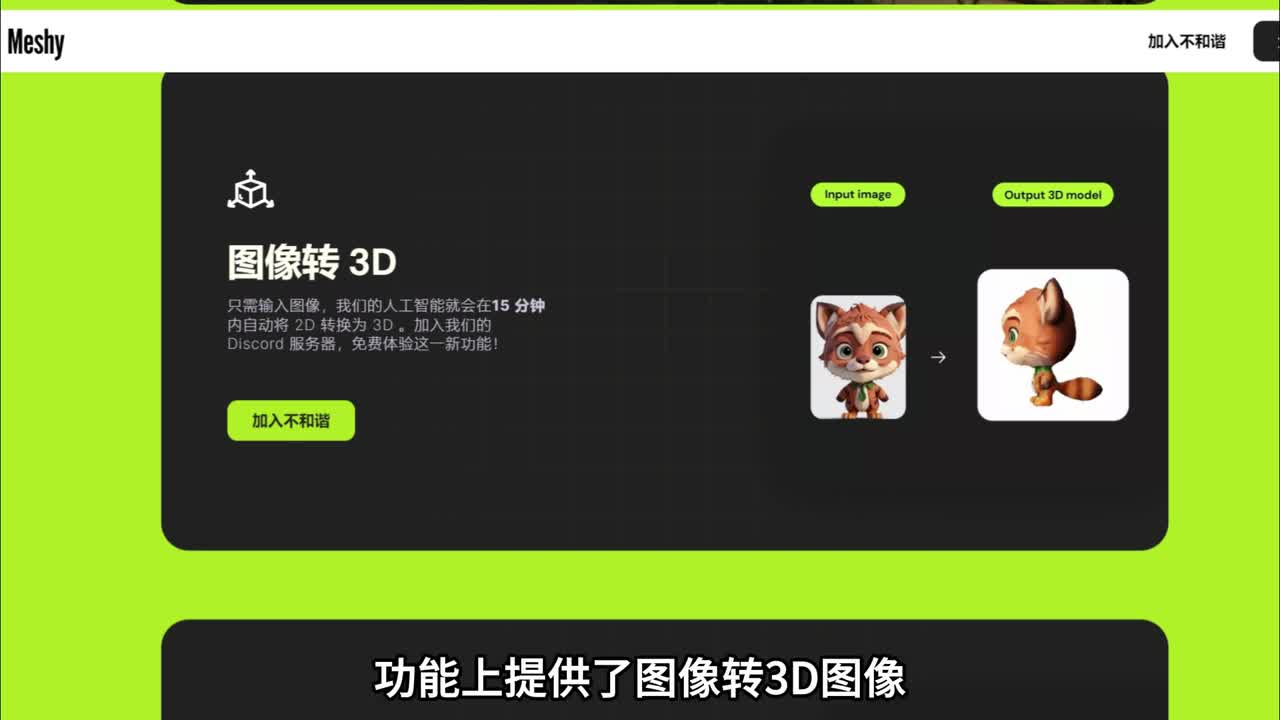 那么这个a i建模工具呢就叫meshy,功能上提供的图像转三d图像文本转三d图像,也就是和ai绘画一样,输入一段话生成三d模型。