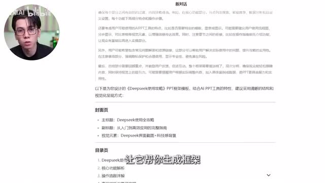 然后是deep sik加a i p p t,它直接能生成出来高质量的p p t。告诉deep sik我们想要做的p p t主题,让它帮你生成框架,复制到a i p p t里,很快就能生出来一份完整的p p t,而且很精美,我们再也不会为p p t头疼了。