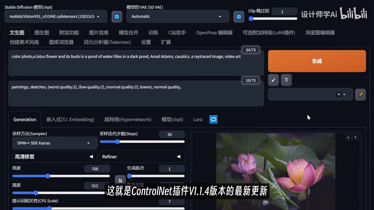 荷花花瓣和荷叶的颜色都被很好的还原,效果也非常不错。这就是control net插件v一点一点四版本的最新更新recover功能。
