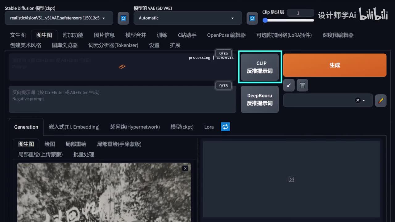 把图片放到图生图中,进行clip反推提示词。复制到文生图的正向提示词中,点击生成。