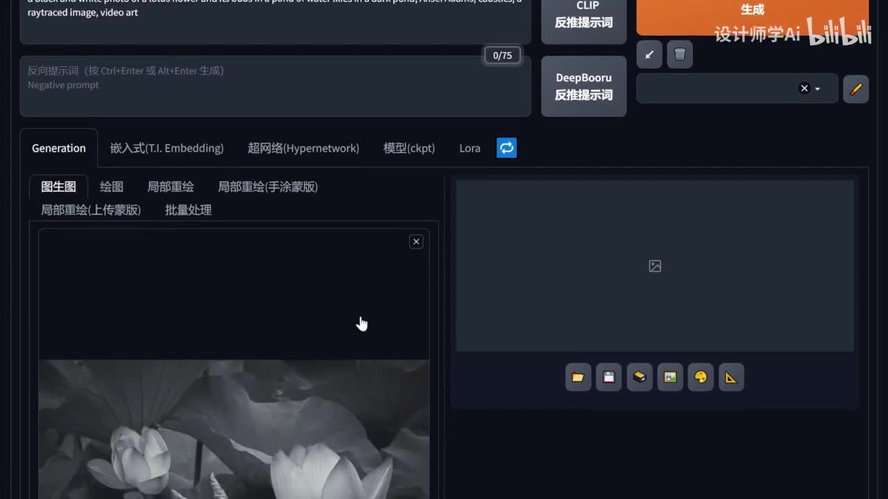 例如color photo,告诉你们一个写这样图片提示词的小技巧,到图生图的界面,把图片放进去,选择clip反推提示词。将反推出来的提示词放到翻译中将描述为黑白照片的词语删掉,再复制过来点击生成。