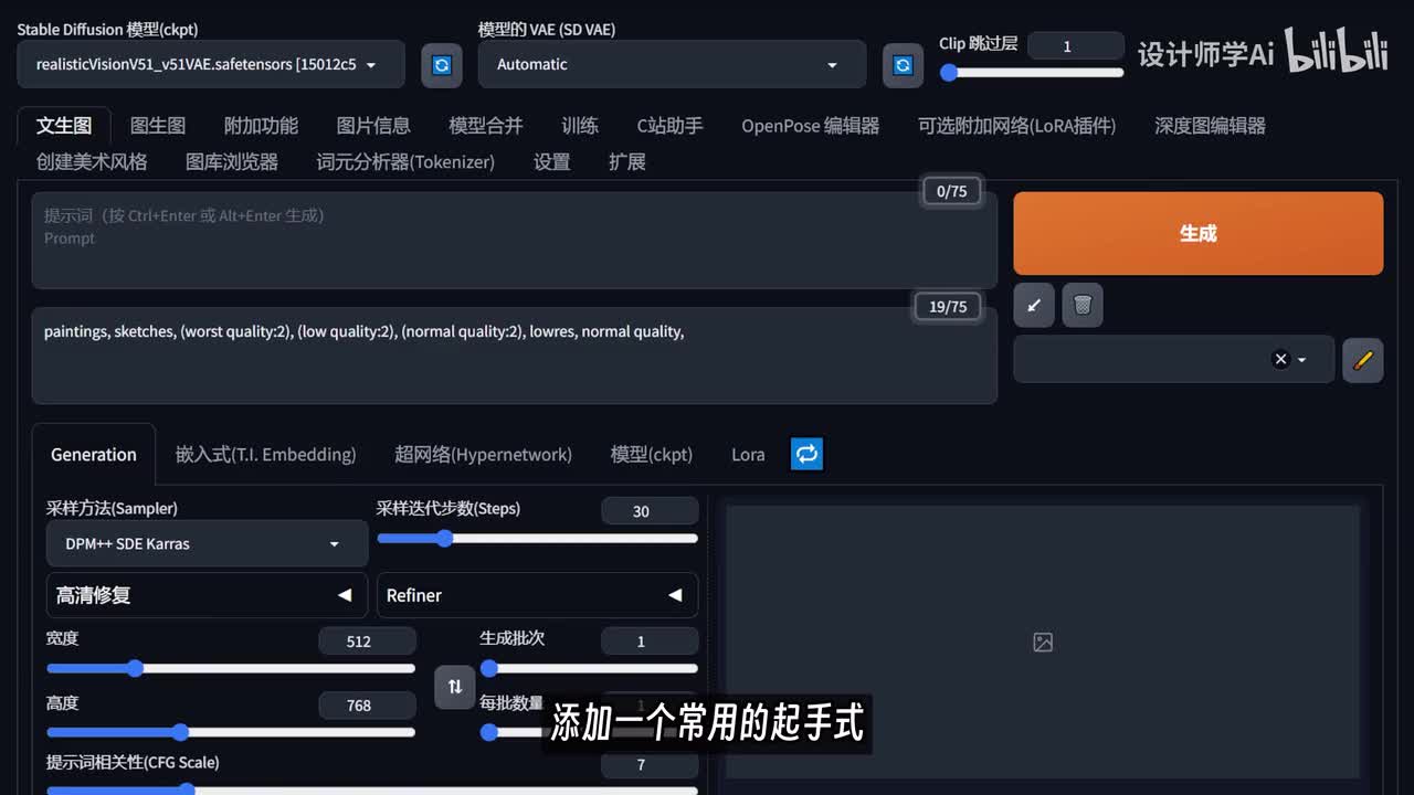如果不熟悉的同学可以直接参考我的参数第三步,写提示词。添加一个常用的起手式,最重要的一点是需要在正向提示词中添加图片颜色的描述。