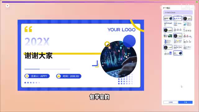 生成完成后点一键生成p p t,选择喜欢的p p t模板,然后它就会自动把文案排版进p p t内,一份完整的p p t就这么做好了,是不是很简单,快去试试吧。