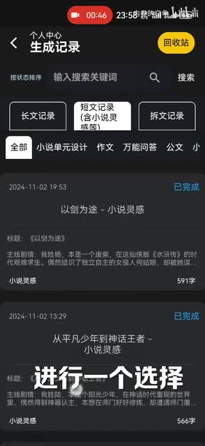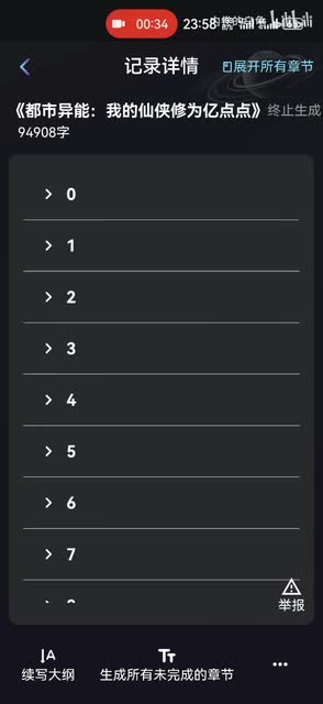 之前有同学问到呃,我那些已经写好的怎么来续写?就写好之后你可以在记录中找到,然后直接点续写大纲,然后里边你就选择大纲进行续写。然后选择好之后,直接点确定它生成。